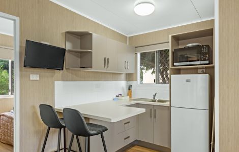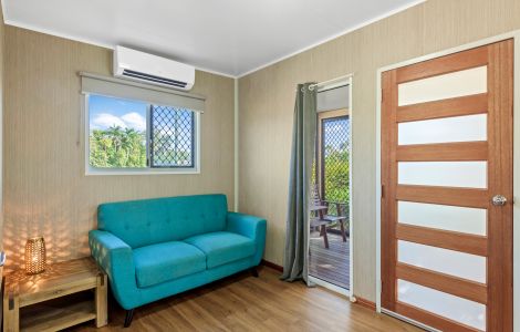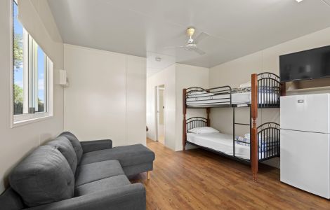 Single bunk bed or sofa-bed in living area